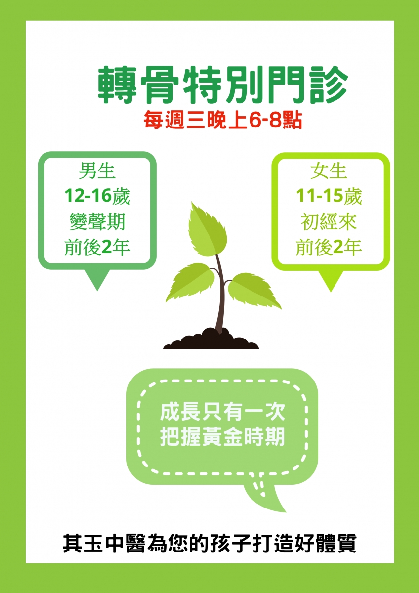 長高、長壯跟充足睡眠、適當飲食、運動、基因 等相關,轉骨調理掌握好時機,效果更佳~
